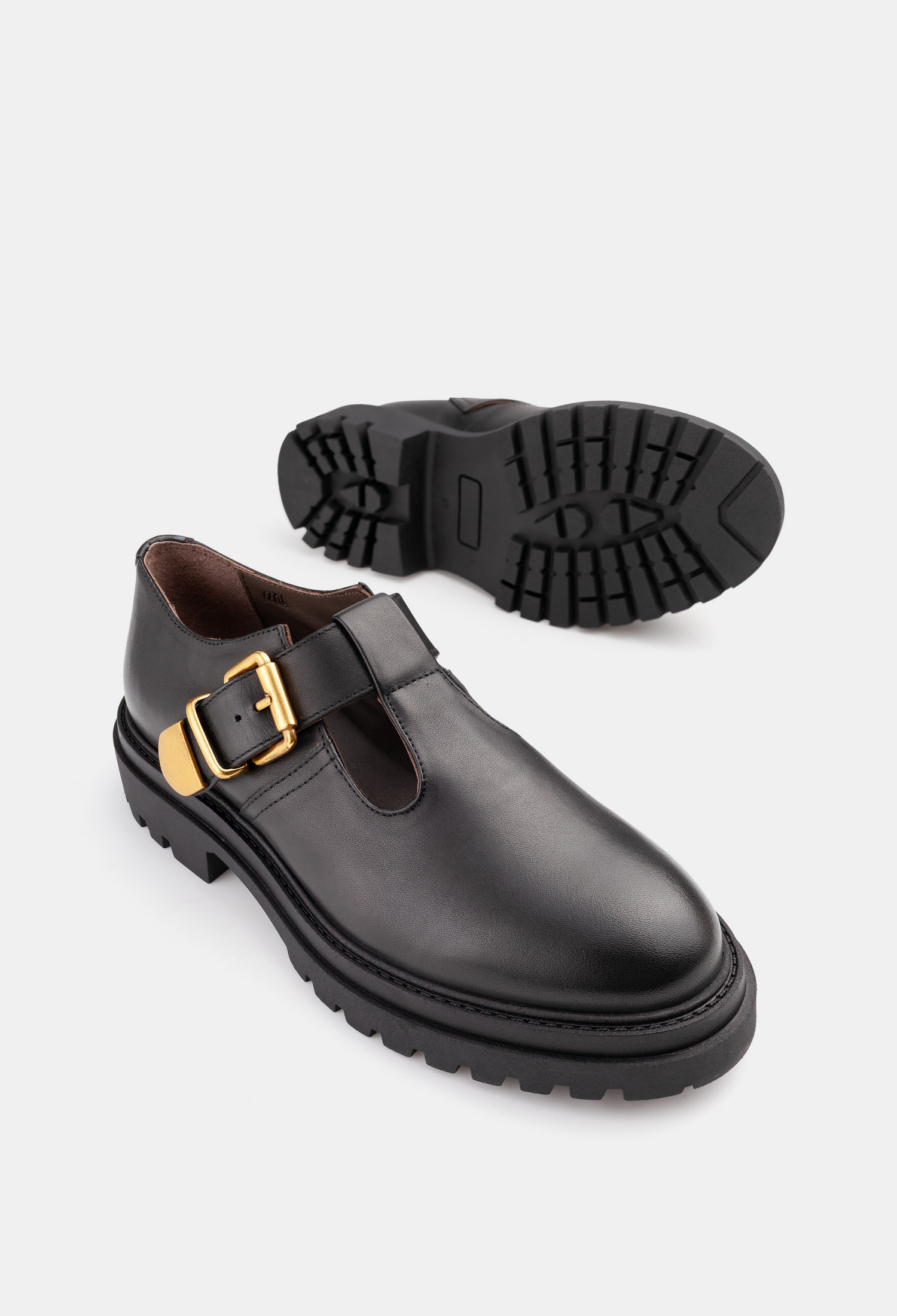 Лоферы в чёрной гладкой коже. Характерные элементы пары — ремешок через щиколотку и акцентная пряжка — придают особый шарм и утончённость модели. Пара выполнена из натуральной кожи и имеет удобную подошву. Лоферы подходят как для повседневного использования, так и для более торжественных случаев. Обратите внимание, изделие идёт в размер, на узкую стопу.